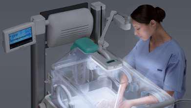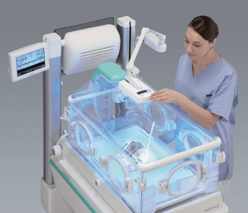 - Switchable to examination lamp with one-touch of a button As an examination lamp, the condition of an infant can be monitored. (White LEDs)